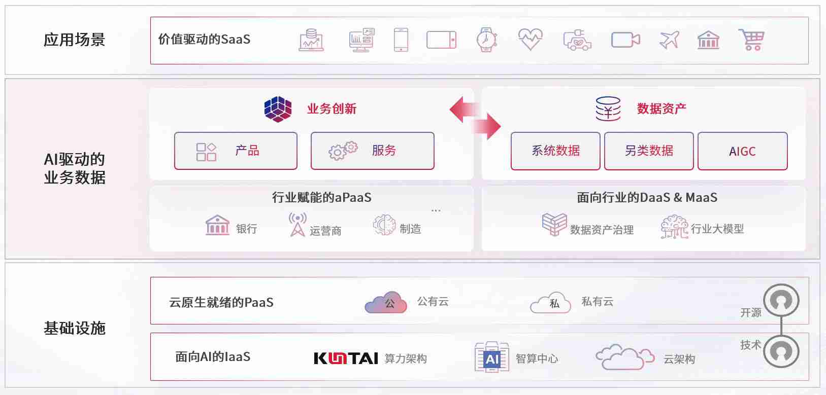 数字时代,,,,围绕企业数字化转型的关键要素,,,尊龙时凯数码开创性的提出数云融合战略和技术体系框架,,着力在云原生、、、数字原生、、、、AI原生和信创产业上架构产品和服务能力,,,,为处在不同数字化转型阶段的快消零售、、、、汽车、、金融、、、、医疗、、、政企、、、、教育、、、运营商等行业客户提供泛在的敏捷IT能力和融合的数据驱动能力,,构建跨界融合创新的数字业务场景和新业务模式,,,助力企业级客户建立面向未来的核心能力和竞争优势,,全面推动社会的数字化、、智能化转型升级。。